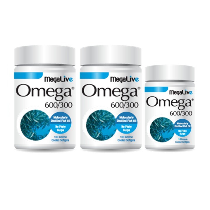 Megalive Omega 600 300 Enteric Coated Softgel Capsules Promo Pack 2x100 S 30 S Megalive